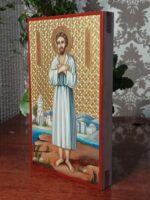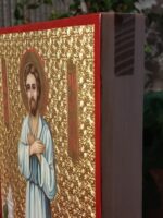 Ікона виконана з липова дошка з дубовими шпонками, ікона написана на левкасі/ ікона написана олійними фарбами / фон ікони з сусального золота / ікона оздоблена чеканим орнаментом