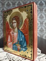 Ікона виконана на липовій дошці з дубовими шпонками, ікона написана на левкасі/ ікона написана олійними фарбами / фон ікони з сусального золота / ікона оздоблена чеканим орнаментом з ємалевим покриттям