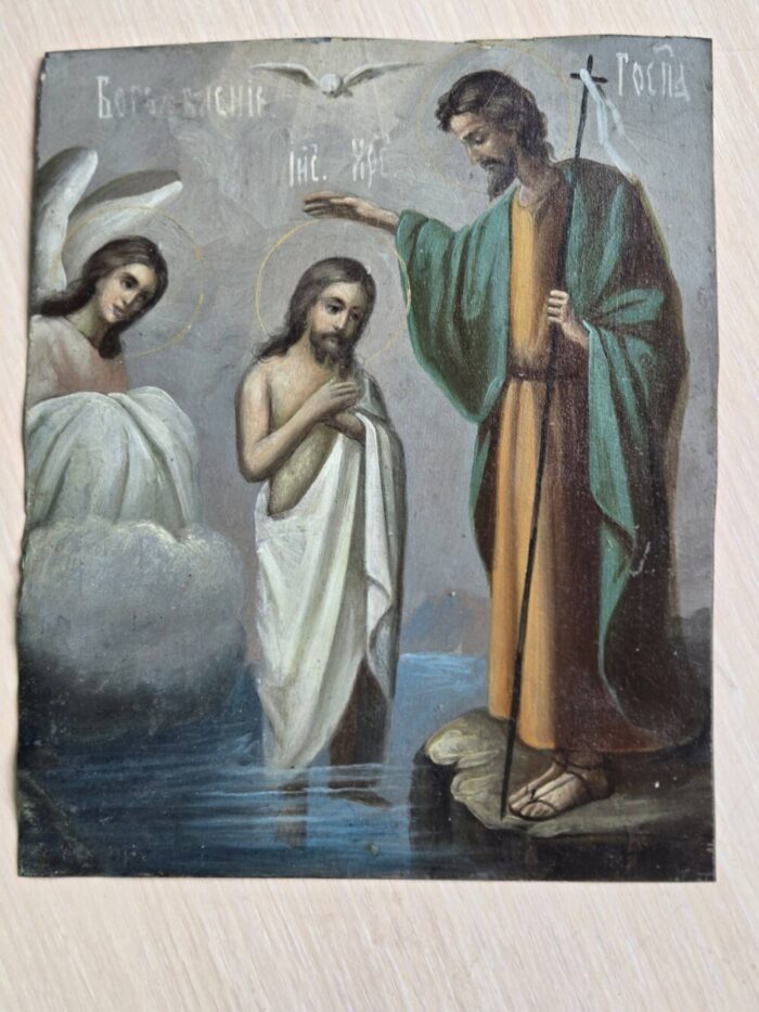 Головна Старовинні ікони Богоявлення Господнє 17,6х21,5 двостороння Знамення