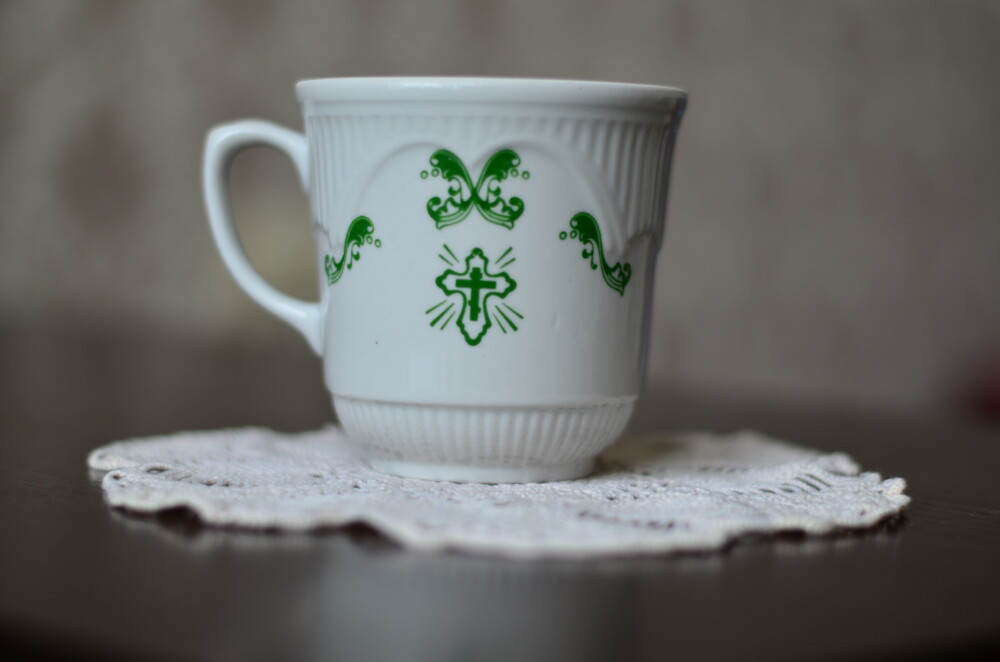 діаметр 8,5 см х 8,5 см / керамічна чашка для святої води з гравюрою успенського собору Київської Лакри
