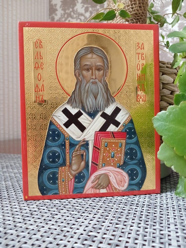 Ікона виконана з липова дошка з дубовими шпонками, ікона написана на левкасі/ ікона написана темперними фарбами / фон ікони з сусального золота / ікона оздоблена чеканим орнаментом