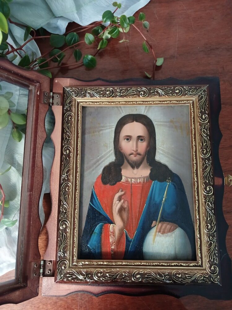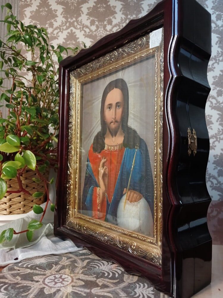 Ікона написана на дошці / ікона написана олійними фарбами / ікона в кіоті / кіот з вільхи / ікона під склом