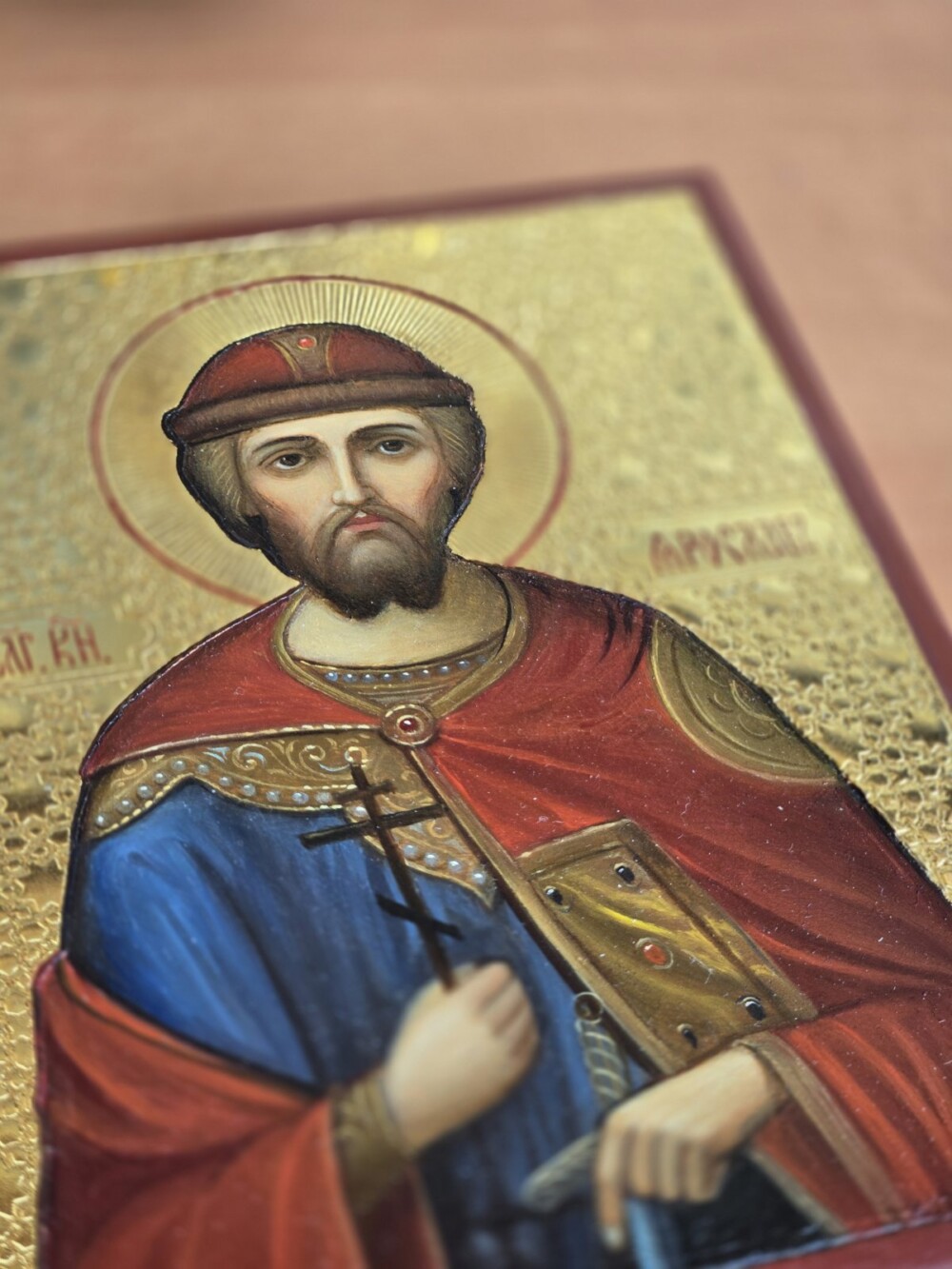 Ікона написана темперою на липовій дошці з дубовими шпонками, вкритій левкасом; оздоблена сусальним золотом з чеканним орнаментом.
