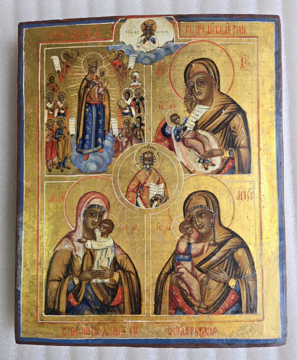 Головна Старовинні ікони ікона Пресвята Богородиця 30х35 Феодорівська, Всіх скорботних радість, Утамуй хвороби, Віднайдення загиблих