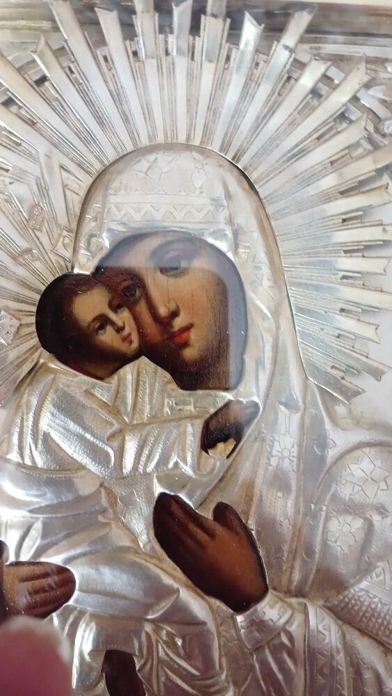 Ікона Богородиця Володимирська 23х26 срібна риза