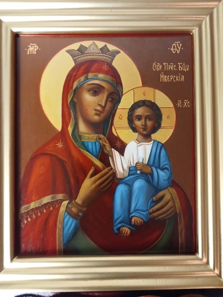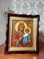 Ікона написана на дошці / ікона написана олійними фарбами / ікона в кіоті / кіот з вільхи / ікона під склом