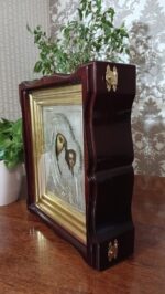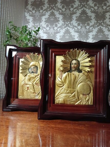 Ікона написана на дошці / ікона написана олійними фарбами / ікона оздоблена срібною ризою 925 проби / ікона в кіоті / рамка кіота покрита сусальним золотом / ікона під склом