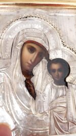 ікона Пресвятия Богородиці Казанська у срібній ризі в кіота