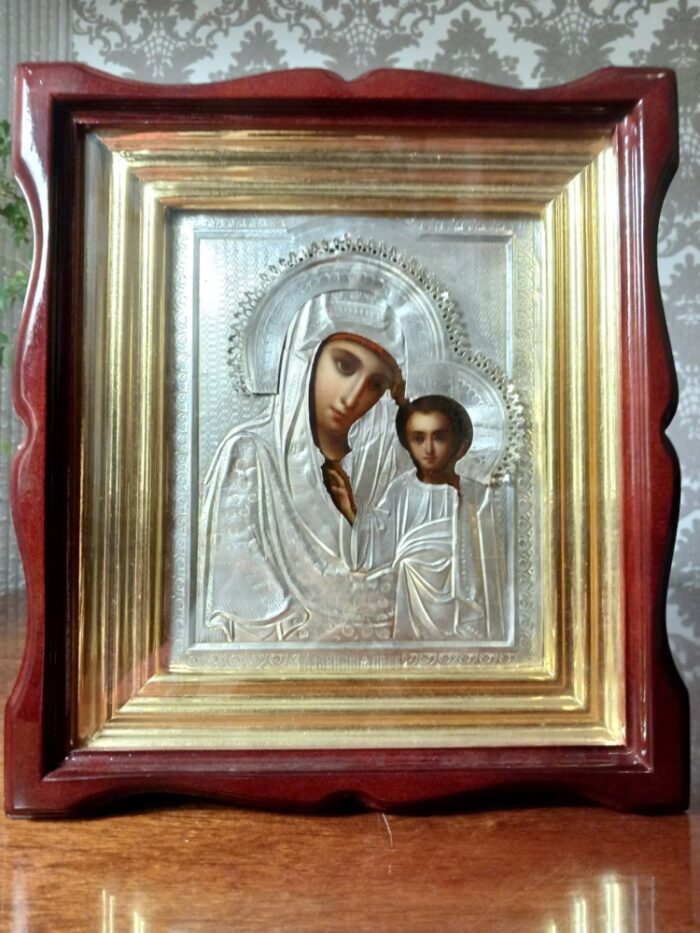 ікона Пресвятия Богородиці Казанська у срібній ризі в кіота