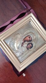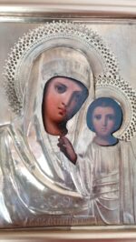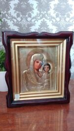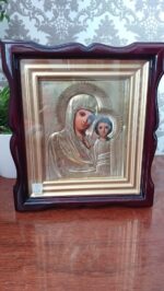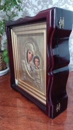 Ікона написана на дошці / ікона написана олійними фарбами / ікона оздоблена чеканою ризою / ікона в кіоті / кіот з вільхи / ікона під склом