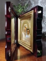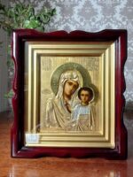 Ікона написана на дошці / ікона написана олійними фарбами / ікона оздоблена ризою з позолотою/ ікона в кіоті / кіот з вільхи / ікона під склом