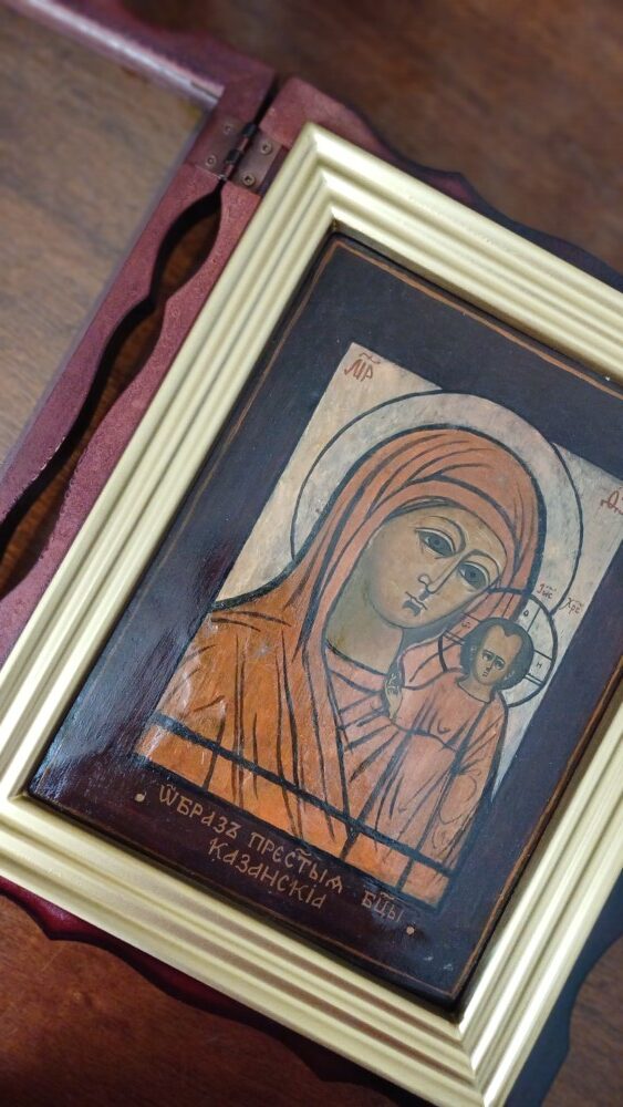 Ікона написана на дошці / ікона написана темперними фарбами / ікона в кіоті / кіот з вільхи / ікона під склом