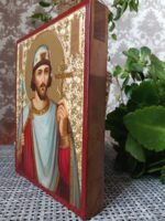 Ікона виконана з липова дошка з дубовими шпонками, ікона написана на левкасі/ ікона написана олійними фарбами / фон ікони з сусального золота / ікона оздоблена чеканим орнаментом