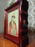 Ікона виконана з липова дошка з дубовими шпонками, ікона написана на левкасі/ ікона написана темперними фарбами / ікона в кіоті / кіот з вільхи / ікона під склом
