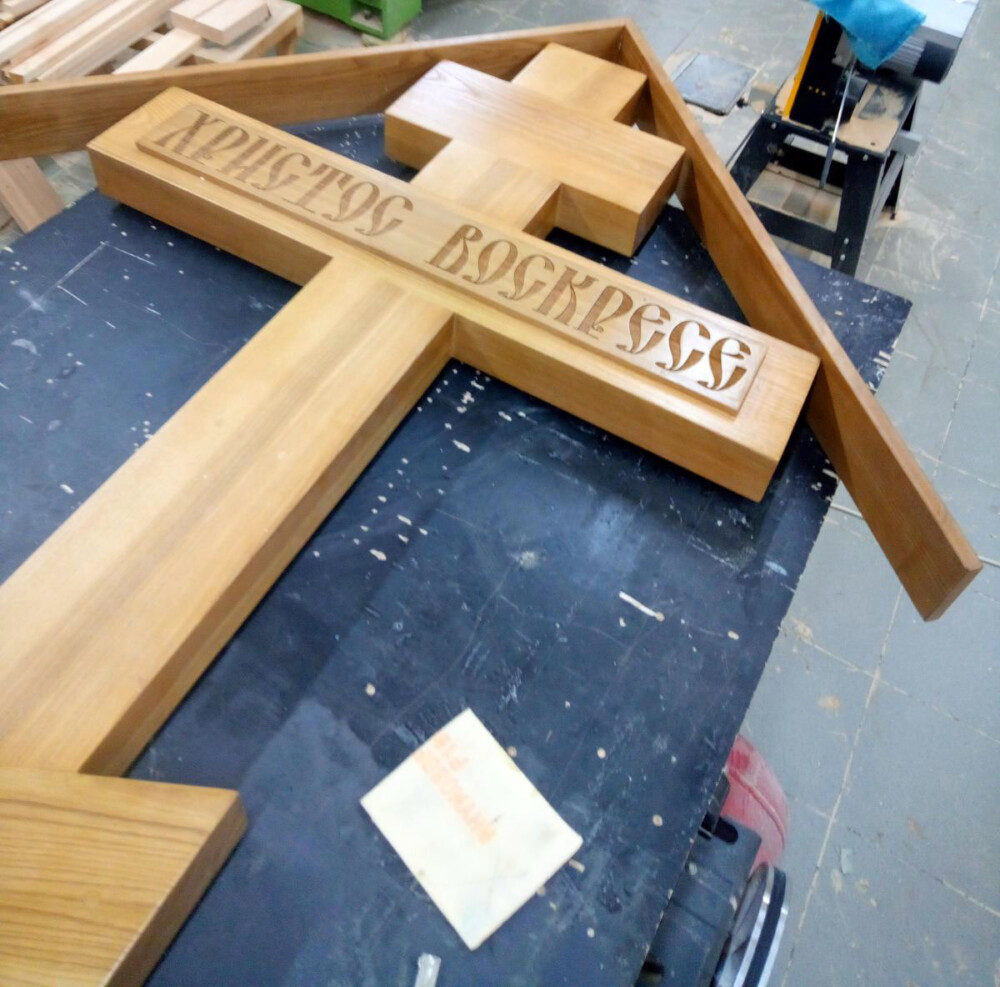 Хрест виготовлена у столярній майстерні “Лаврська”.