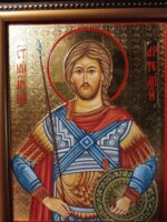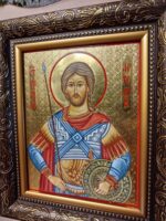 Ікона виконана з липова дошка з дубовими шпонками, ікона написана на левкасі/ ікона написана темперними фарбами / фон ікони з сусального золота / ікона оздоблена чеканим орнаментом / ікона в кіоті / кіот з вільхи / ікона під склом