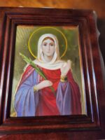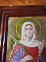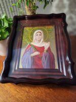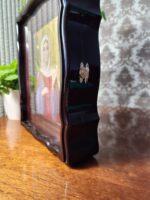 Розмір іконної дошки 15х20 см, габаритний розмір ікони разом з кіотом 23х28 см.