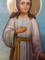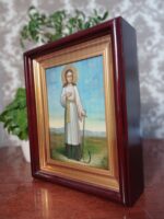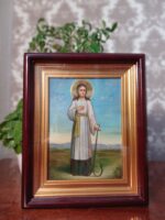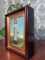 Ікона виконана з липова дошка з дубовими шпонками, ікона написана на левкасі/ ікона написана олійними фарбами / німб ікони з сусального золота / ікона в кіоті / кіот з вільхи / ікона під склом