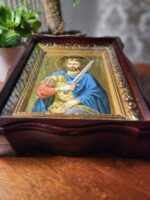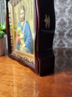 Ікона – липова дошка, дубові шпонки, левкас, темпера,  сусальне золото, лакове покриття.