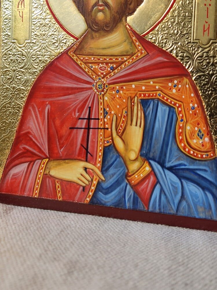 Ікона – липова дошка, дубові шпонки, левкас, олійні фарби, сусальне золото, лакове покриття.