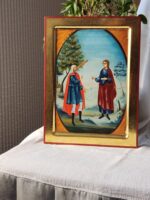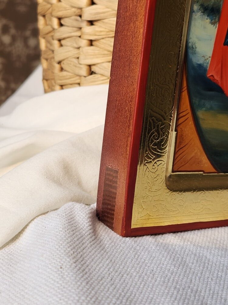 Ікона – липова дошка, дубові шпонки, левкас, олійні фарби, сусальне золото, лакове покриття.