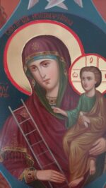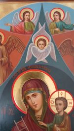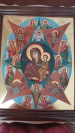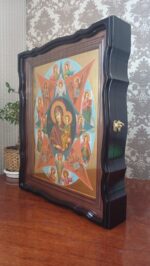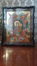 Ікона виконана з липова дошка з дубовими шпонками, ікона написана на левкасі/ ікона написана олійними фарбами / фон ікони з сусального золота / ікона в кіоті / кіот з вільхи / ікона під склом