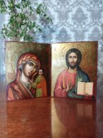 Ікона виконана з липова дошка з дубовими шпонками, ікона написана на левкасі/ ікона написана темперними фарбами / фон ікони з сусального золота