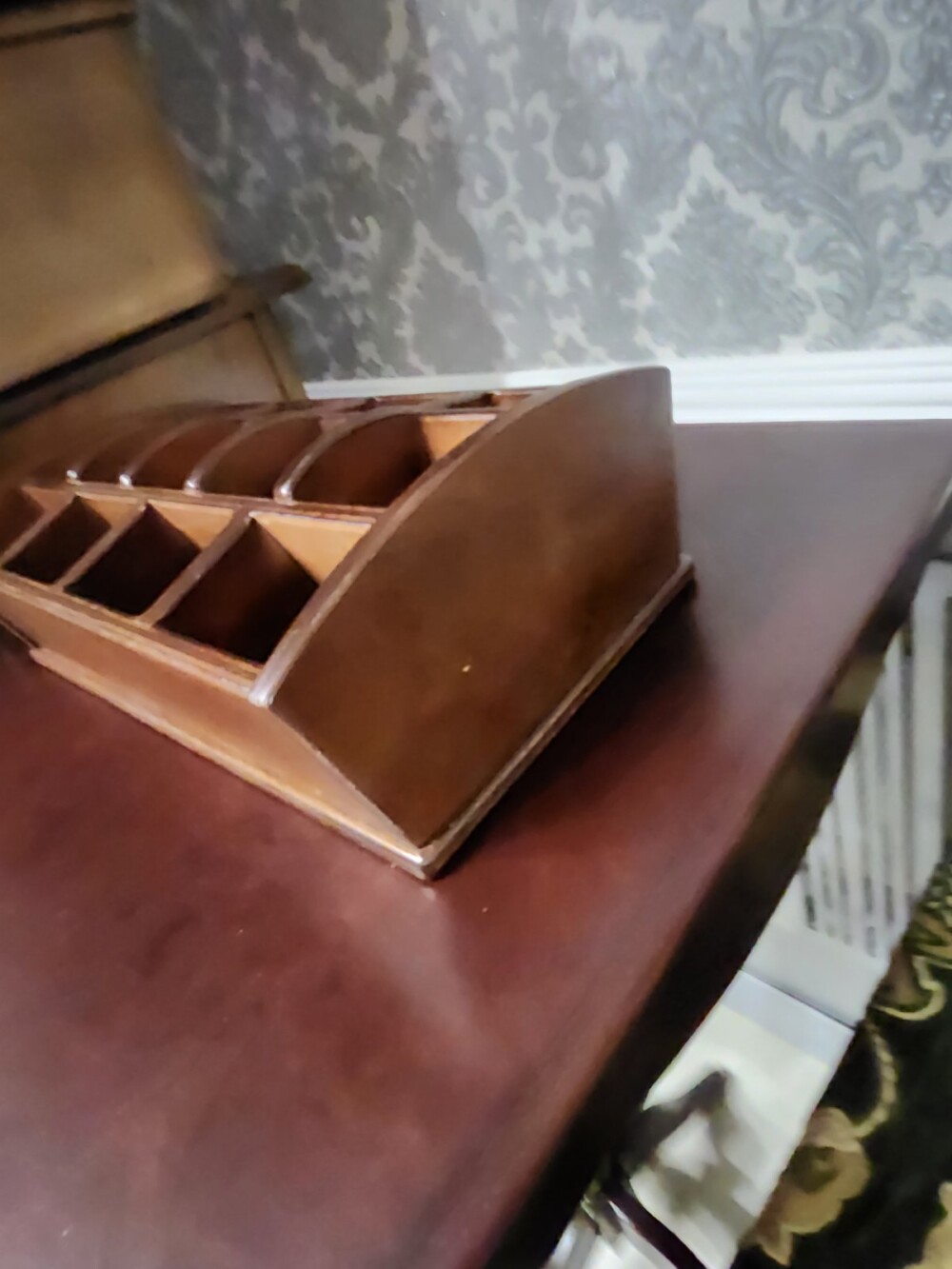 Підставка для церковних записок, має 13 відділів, розміщених у три ряди.
