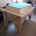 Підставка під плащаницю оздоблена різьбою ручної роботи на чотирьох ніжках.