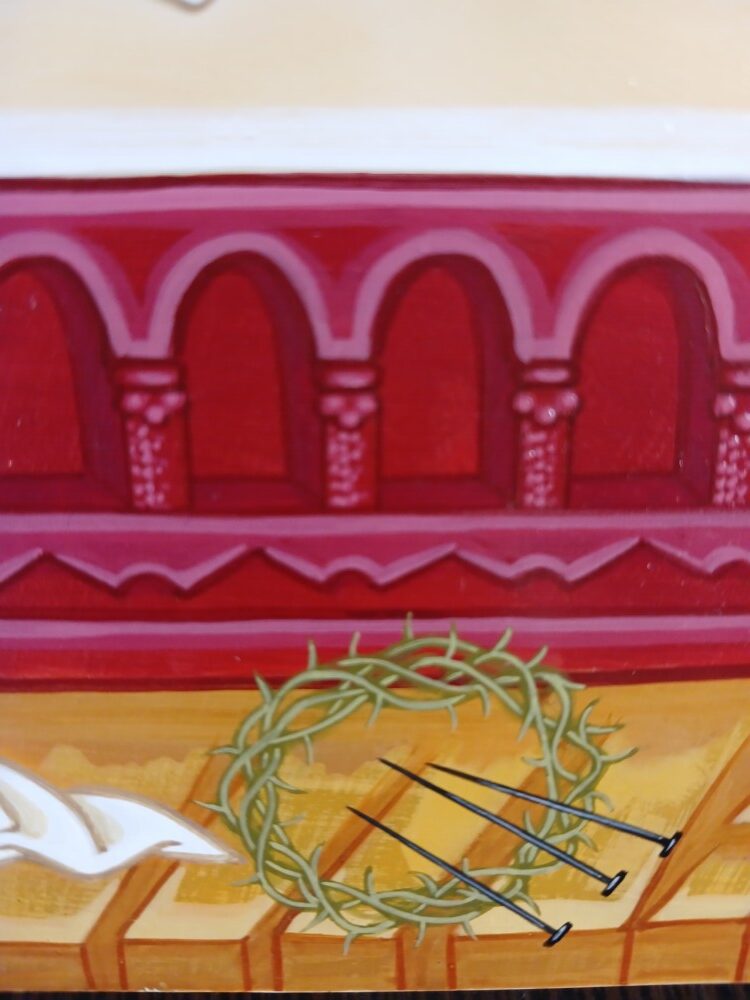 Ікона виконана з липова дошка з дубовими шпонками, ікона написана на левкасі/ ікона написана темперними фарбами