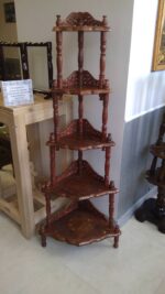 Полиця для ікон кутова 5- ти ярусна на тонких різьбленних колонах, з різьбленими бортиками.