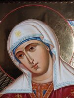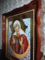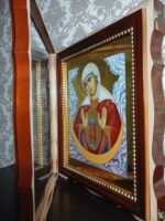 Ікона виконана з липова дошка з дубовими шпонками, ікона написана на левкасі/ ікона написана темперними фарбами / фон ікони з сусального золота / ікона в кіоті / кіот з вільхи / ікона під склом