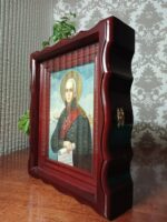 Ікона виконана з липова дошка з дубовими шпонками, ікона написана на левкасі/ ікона написана олійними фарбами / німб ікони з сусального золота / ікона в кіоті / кіот з вільхи / ікона під склом