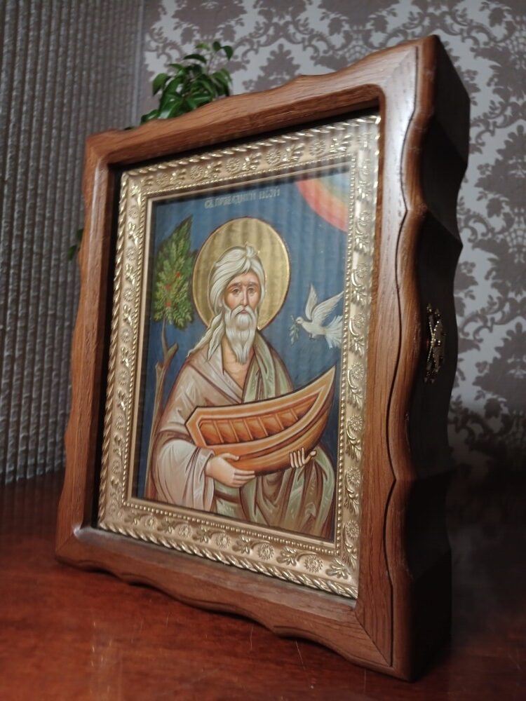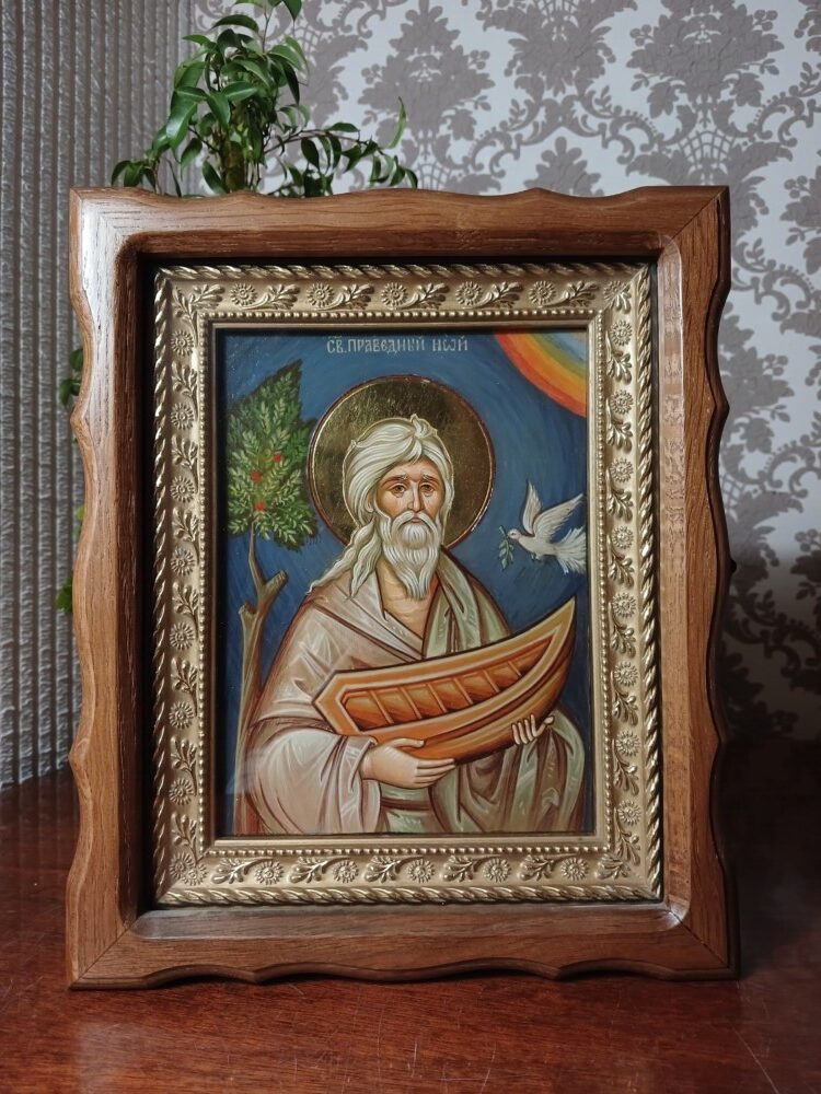 Ікона виконана з липова дошка з дубовими шпонками, ікона написана на левкасі/ ікона написана темперними фарбами / німб ікони з сусального золота / ікона в кіоті / кіот з дубу / ікона під склом