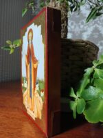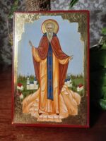 Ікона виконана з липова дошка з дубовими шпонками, ікона написана на левкасі/ ікона написана темперними фарбами / фон ікони з сусального золота / ікона оздоблена чеканим орнаментом