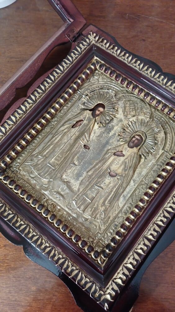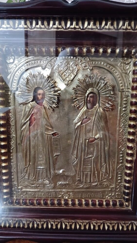 ікона святих преподобних Антонія і Феодосія Печерських в ризі в кіоті