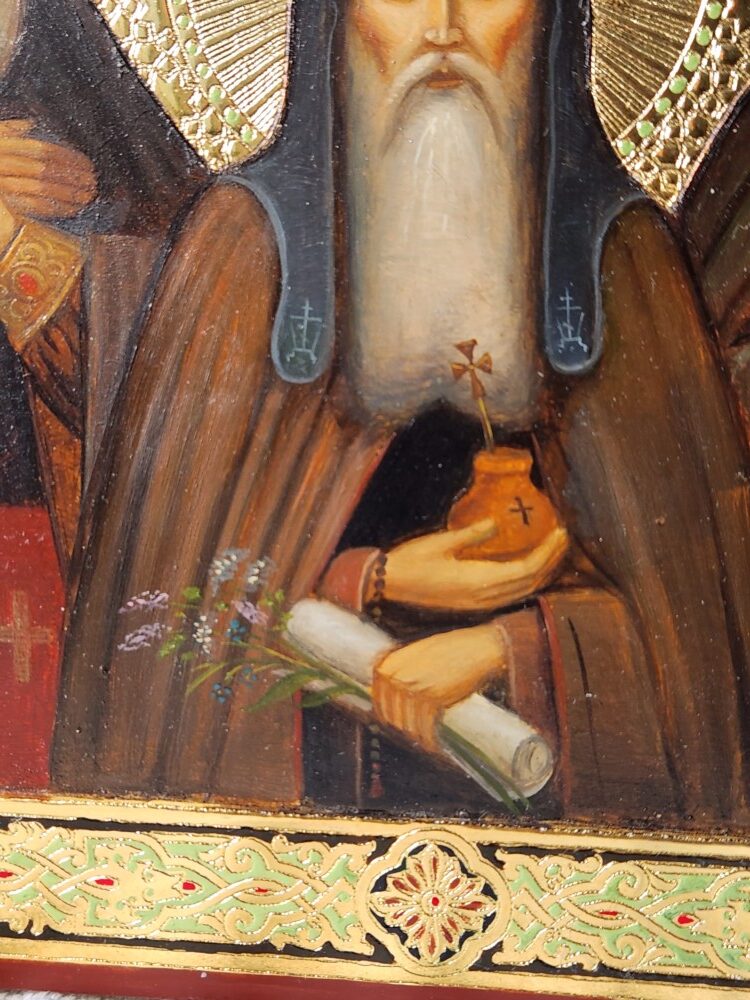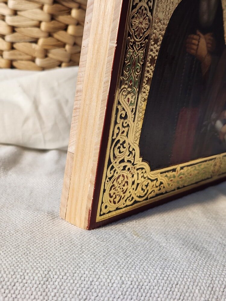 Ікона – липова дошка, дубові шпонки, левкас, олійні фарби, сусальне золото, лакове покриття.
