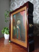 Ікона написана на дошці / ікона написана олійними фарбами / ікона в кіоті / кіот з вільхи / ікона під склом