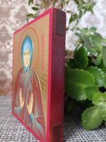 Ікона виконана з липова дошка з дубовими шпонками, ікона написана на левкасі/ ікона написана темперними фарбами / фон ікони з сусального золота / ікона оздоблена чеканим орнаментом