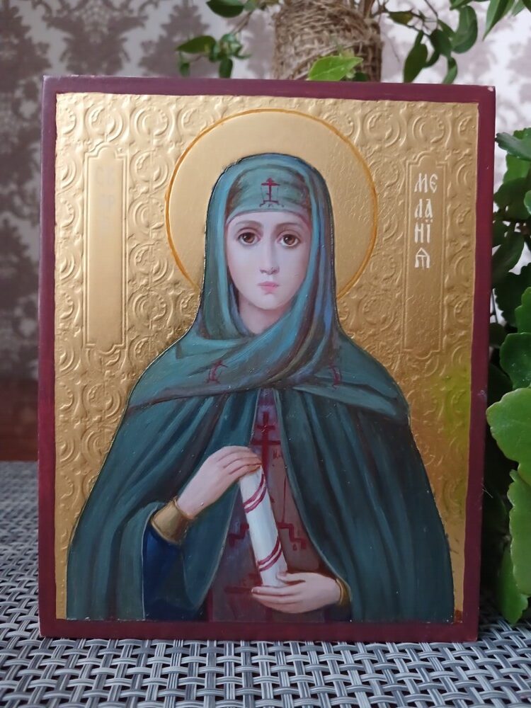 Ікона виконана з липова дошка з дубовими шпонками, ікона написана на левкасі/ ікона написана олійними фарбами / фон ікони з сусального золота / ікона оздоблена чеканим орнаментом