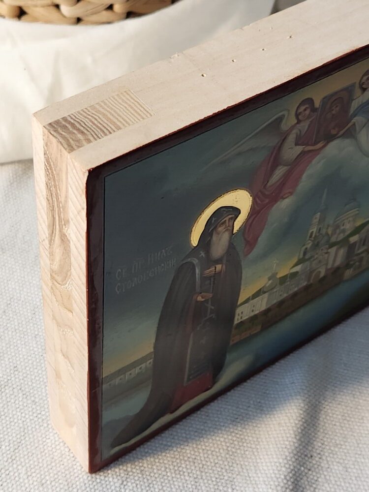 Ікона – липова дошка, дубові шпонки, левкас, олійні фарби, сусальне золото, лакове покриття.