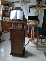 Пюпітр виготовлений у столярній майстерні “Лаврська” з ясеневої деревини. Є зізні варіанти у виборі тонування під лак.
