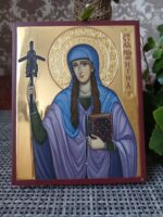 Ікона виконана з липова дошка з дубовими шпонками, ікона написана на левкасі/ ікона написана темперними фарбами / фон ікони з сусального золота / ікона оздоблена чеканим орнаментом