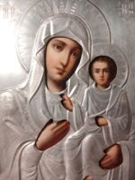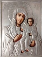 ікона Пресвятої Богородиці Смоленська у срібній ризі в кивоті з червоного дерева