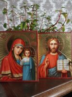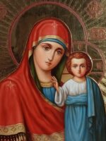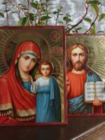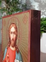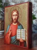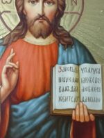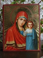 Ікона виконана з липова дошка з дубовими шпонками, ікона написана на левкасі/ ікона написана олійними фарбами / фон ікони з сусального золота / ікона оздоблена чеканим орнаментом