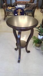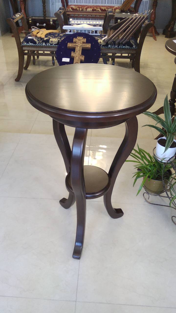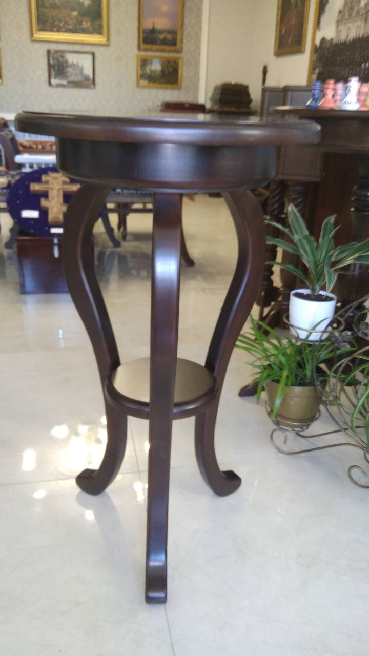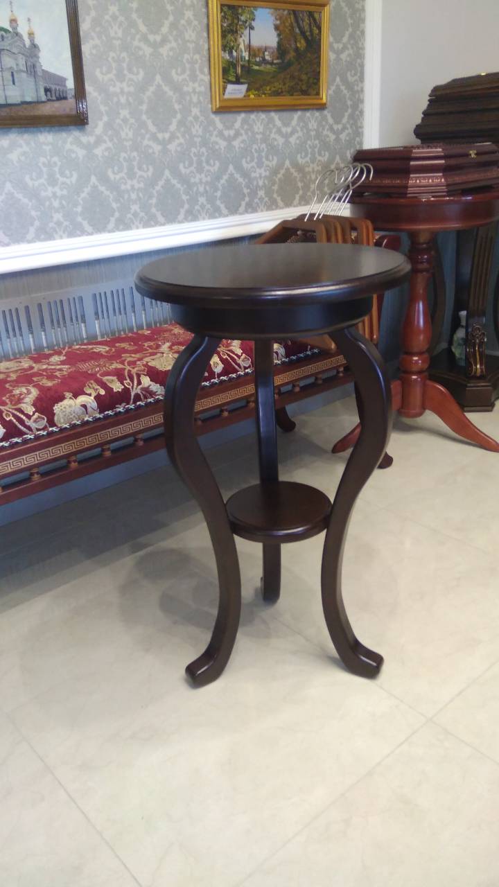 Столик для літії круглий з полицею, на тонких фігурних ніжках, виготовлений із ясеневої деревини.