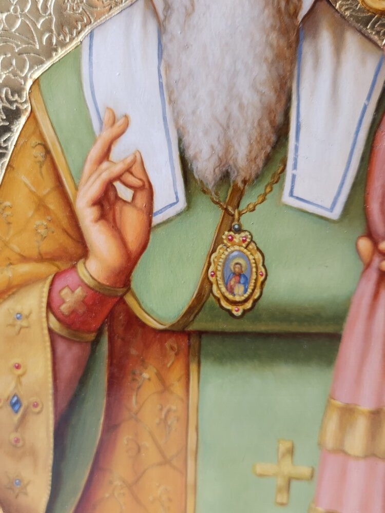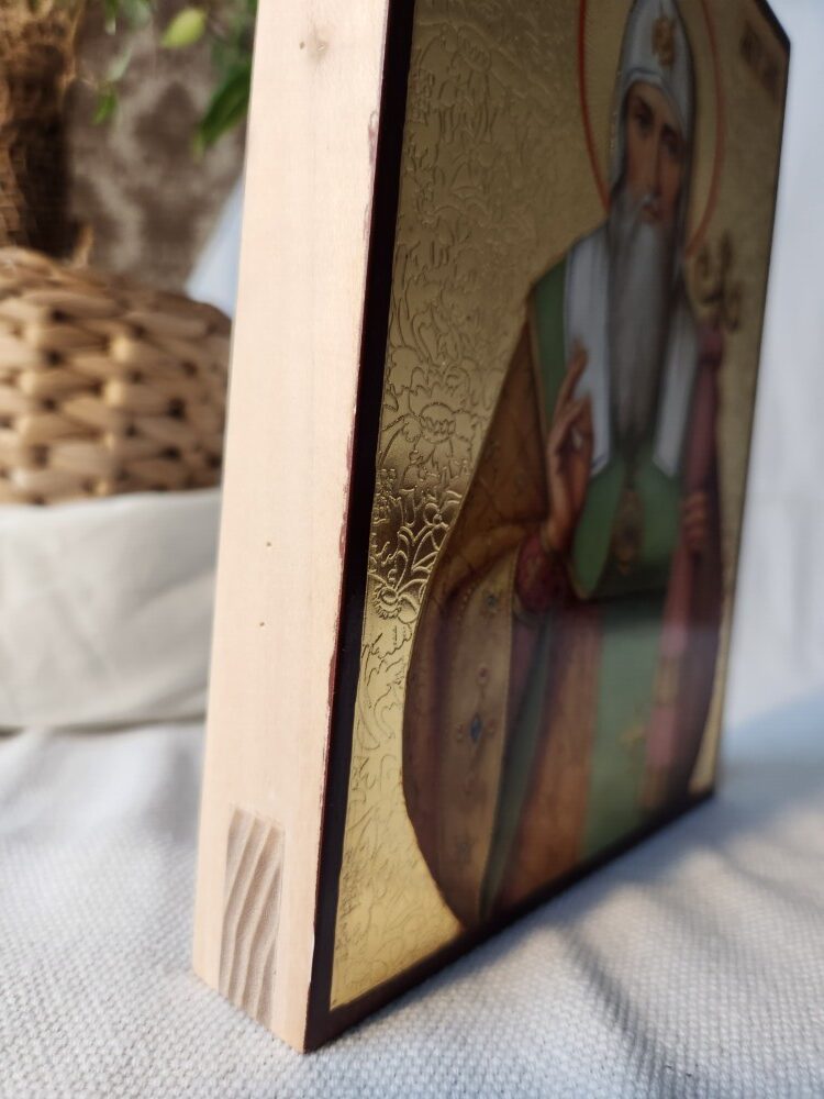 Ікона – липова дошка, дубові шпонки, левкас, олійні фарби, сусальне золото, лакове покриття.
