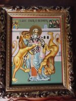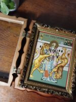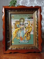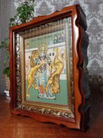 Ікона виконана з липова дошка з дубовими шпонками, ікона написана на левкасі/ ікона написана темперними фарбами / німб ікони з сусального золота / ікона в кіоті / кіот з вільхи / ікона під склом