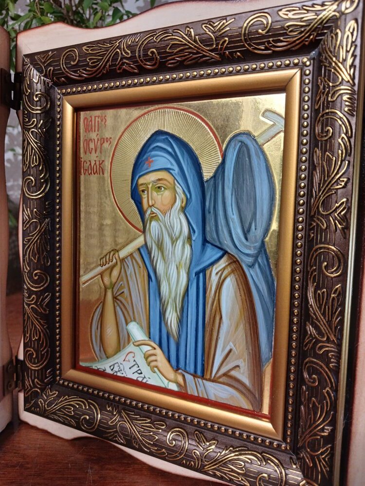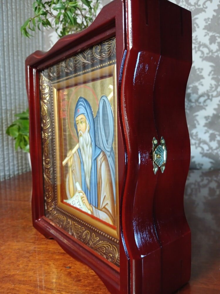 Ікона виконана з липова дошка з дубовими шпонками, ікона написана на левкасі/ ікона написана темперними фарбами / фон ікони з сусального золота / ікона в кіоті / кіот з вільхи / ікона під склом