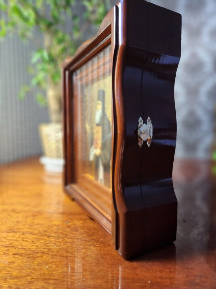 Ікона – липова дошка, дубові шпонки, левкас, олійні фарби, сусальне золото, лакове покриття.
